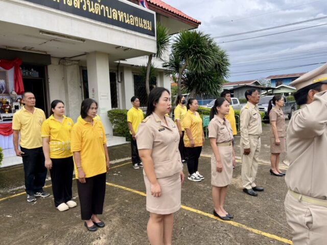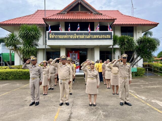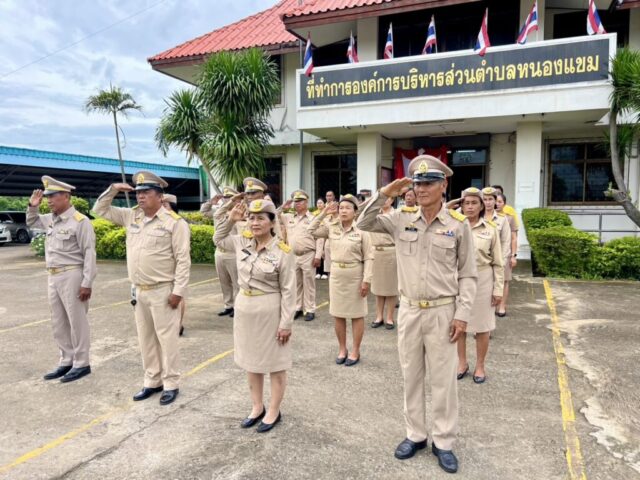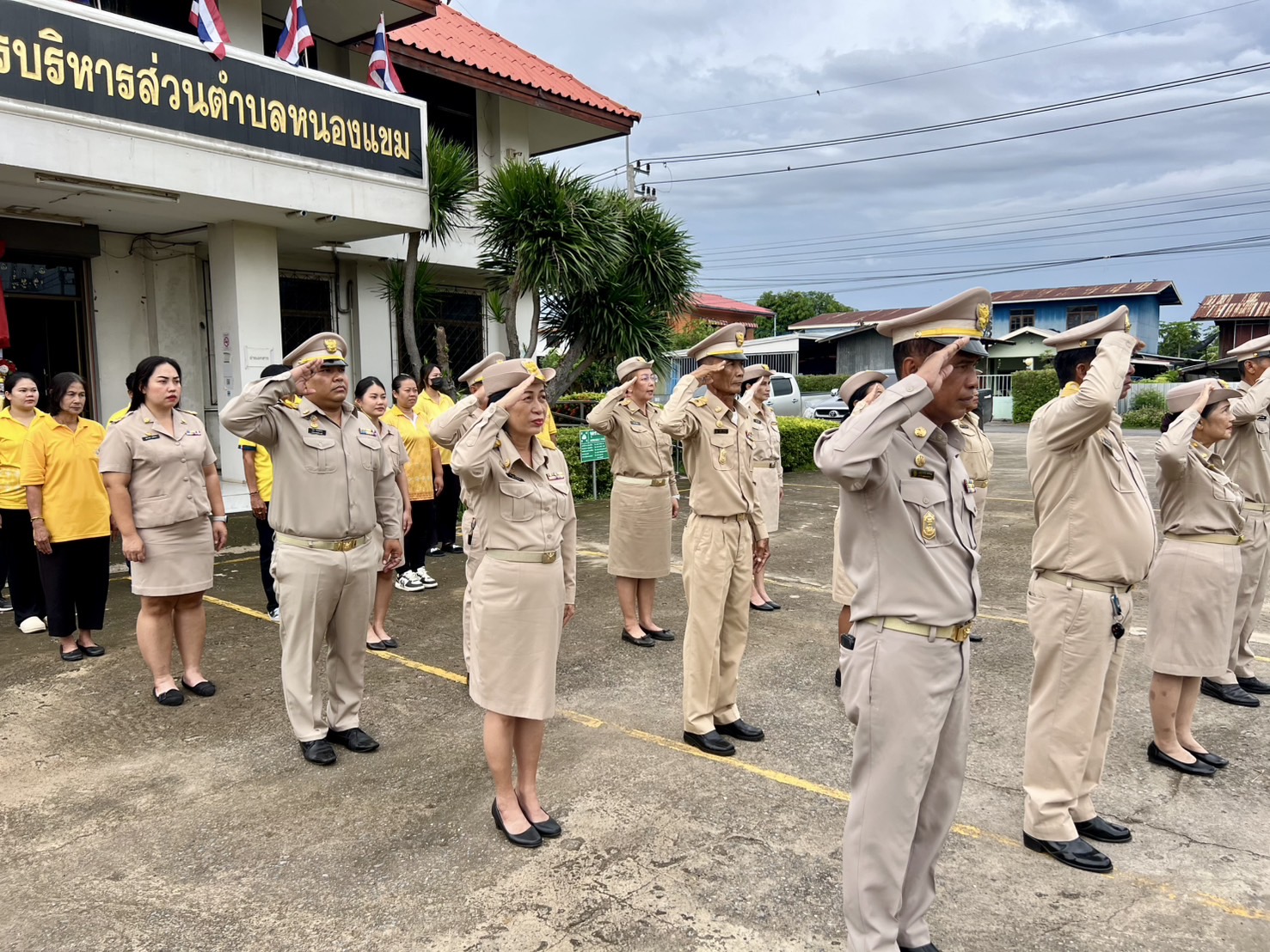 เวลา 08.30 น. องค์การบริหารส่วนตำบลหนองแขม สมาชิกสภา กระทำพิธีเชิญธงชาติไทย เนื่องในวันพระราชทานธงชาติไทย 28 กันยายน 2568