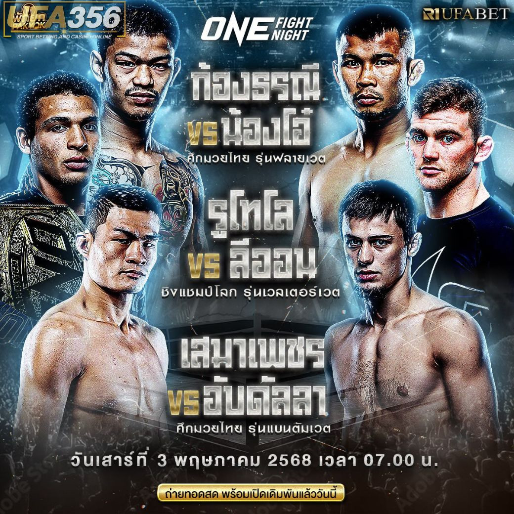 เว็บมวย One ที่เปิดให้แทงมวย One Championship แบบสดๆ ครบทุกคู่ แทงได้ทุกคู่ ราคาเริ่มต้นที่ 10 บาทต่อคู่ ไม่ว่าคุณจะเป็นแฟนมวย One Championship คนไหน ทั้งตะวันฉาย รถถัง หรือคนอื่นๆ แทงมวยออนไล์ แทงมวยวัน one championship